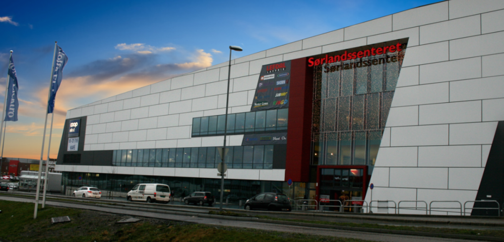 Sørlandssenteret is among the largest shopping centres in Norway and Northern Europe. It lies 12 km east of Kristiansand, close to the popular Kristiansand Zoo and Amusement Park. Sørlandssenteret was built in 1987, and was remodeled and expanded in 1995 and 2013. It holds more than 200 stores. The mall expanded in 1995 and 2013. In 2005 the mall had over 3,6 million visitor. It is opened from 10 to 21 in the weekdays and 10 to 19 at Saturday, the mall is closed on Sundays except some restaurants.